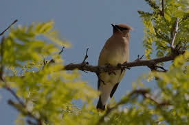 Last night before Wine Hour I was resting on the couch on the porch and listening to the birds. There was something making a high twittery, churring sound nearby, so high pitched it was almost out of hearing range. A couple of somethings by the sound of it. I couldn't tell if it was coming from the oak tree off to my right or from the tangle of lilacs, apple trees, scrubby bushes and pines over across the drive. I thought maybe it was hummingbirds. The other evening a green hummingbird darted out of the the oak tree and hung in front of the porch inspecting us for 10-20 seconds before making a curlicue dance and darting off towards the lilacs. Finally I got up to investigate and found that the big fluffy orange cat from the big house was also prowling around our yard. I determined the sound was coming from the somewhere in the lilacs and just as my father in law came out of the house and asked me what I was doing, a pair of cedar wax wings leapt up out of the brush and lighted on the top of the tallest pine tree. They posed there prettily for a few moments then flew into the woods.
